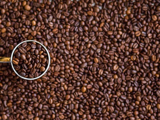 Wallpaper A cup of coffee beans stands on the beans