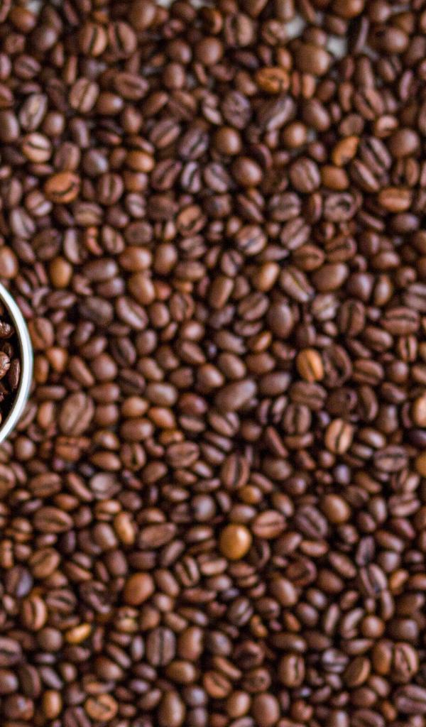Wallpaper A cup of coffee beans stands on the beans