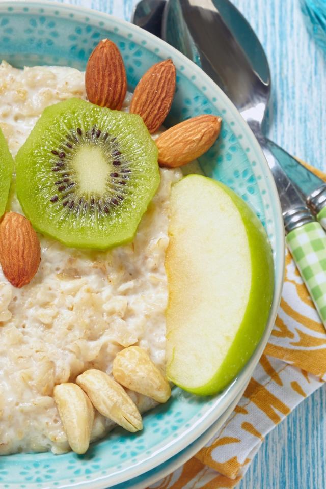 Wallpaper Oatmeal with nuts, kiwi and apples for a child