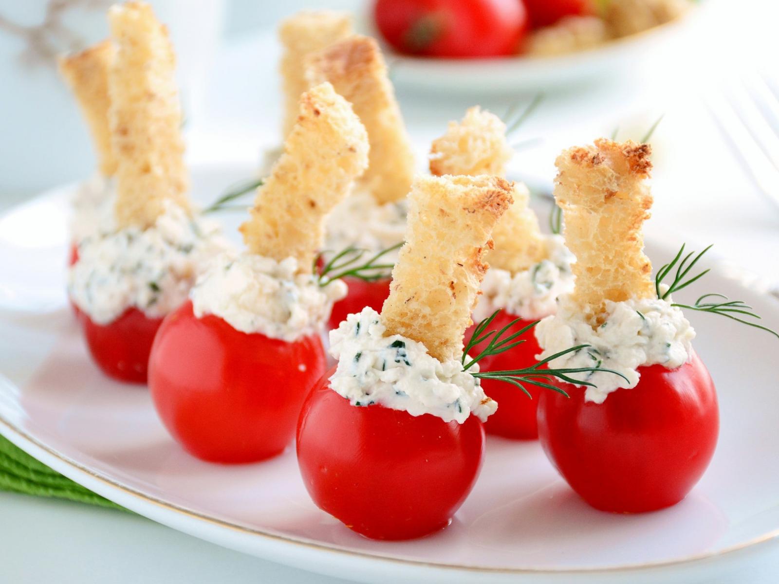Wallpaper Tomatoes stuffed with curd and crackers
