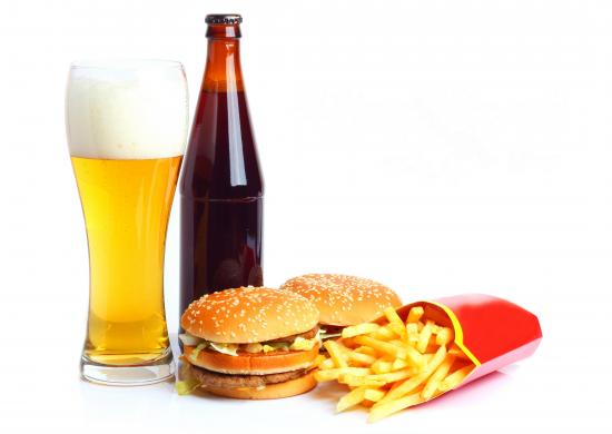 Wallpaper Beer on a white plate with hamburgers and french fries.