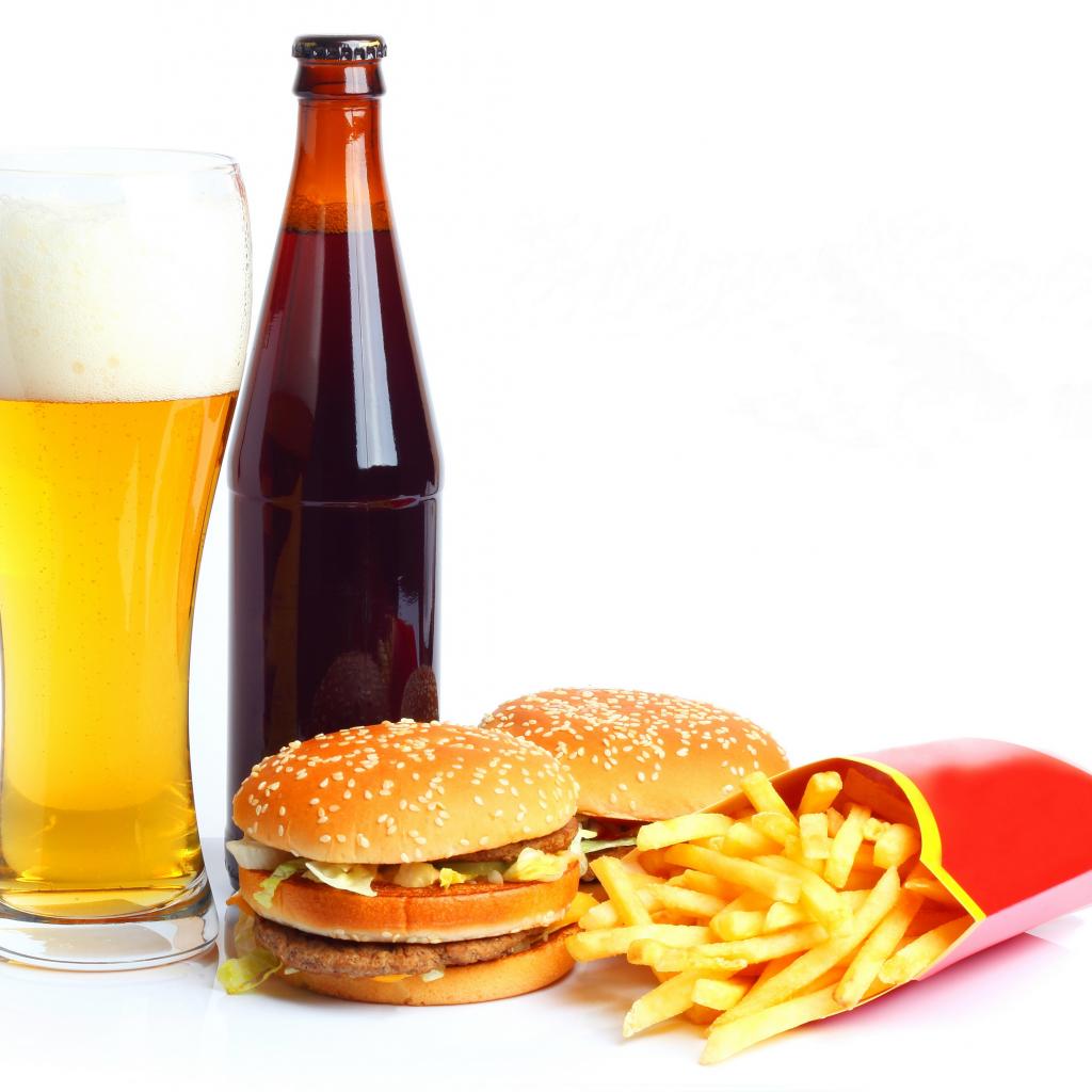 Wallpaper Beer on a white plate with hamburgers and french fries.