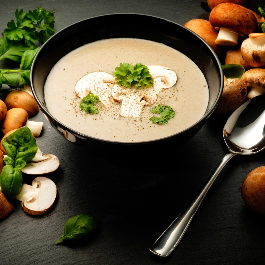 Wallpaper Mushroom soup puree on a table with champignons