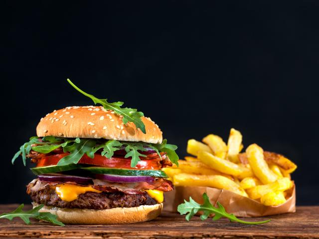 Wallpaper Tasty burger on the table with french fries