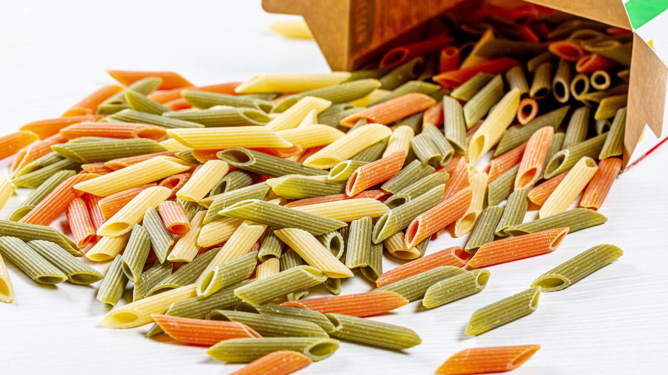 Wallpaper Multi-colored large pasta on a white background