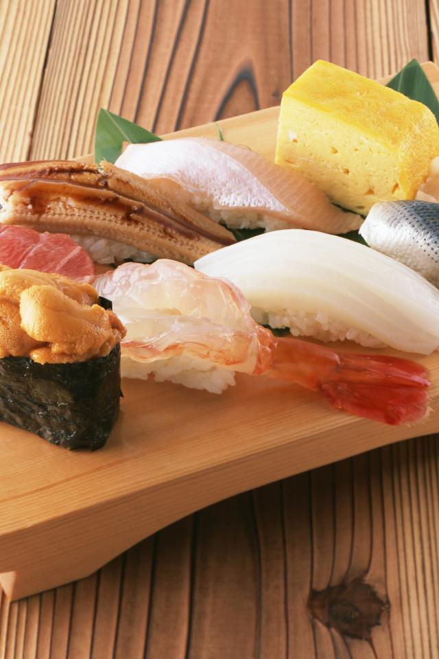 Wallpaper Appetizing Japanese sushi on a wooden board