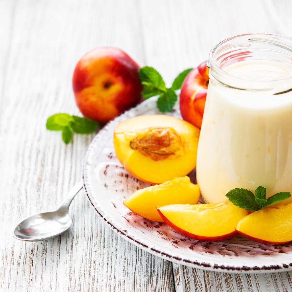 Wallpaper Kefir in a jar on a table with nectarine