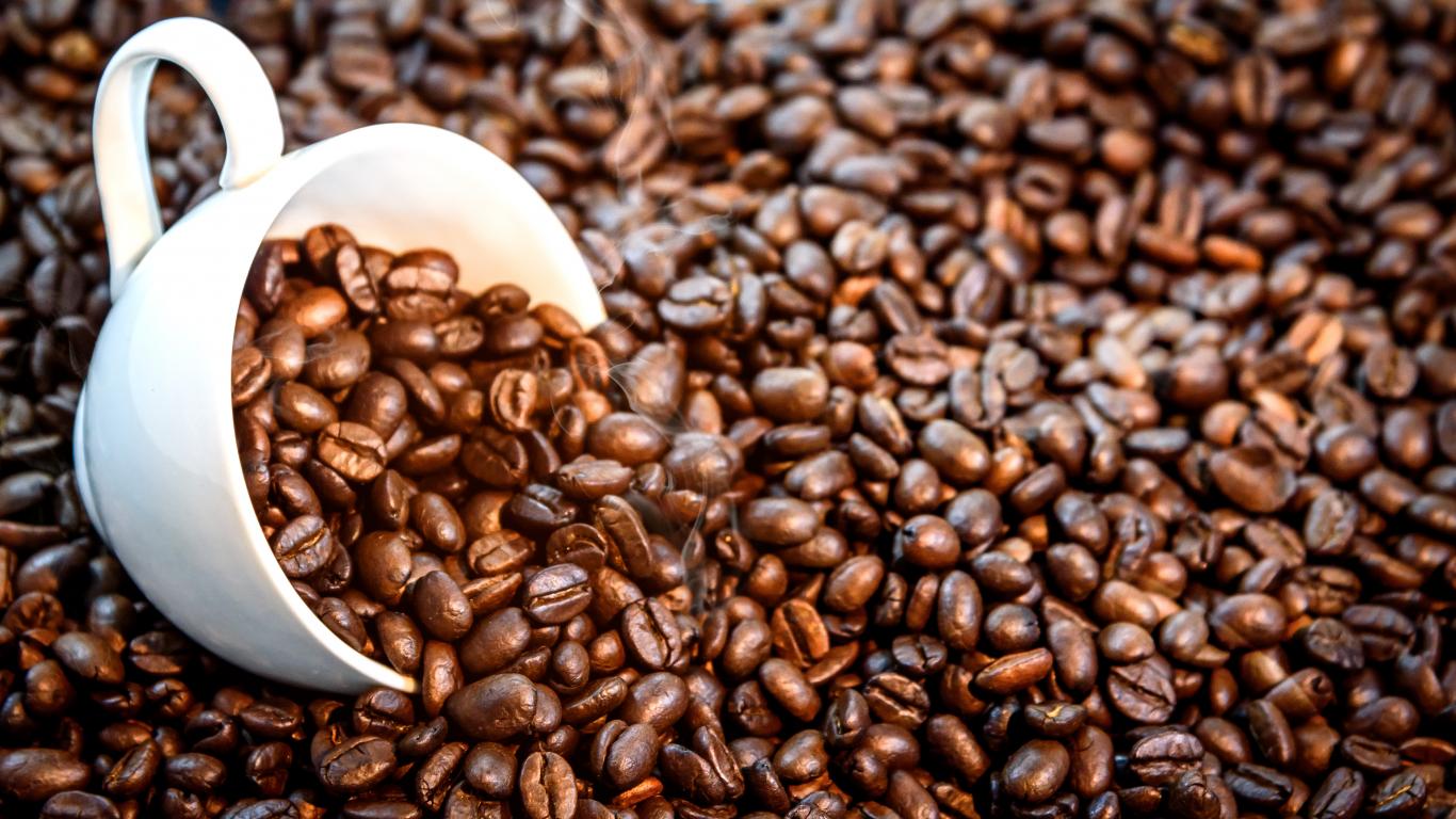 Wallpaper White cup with roasted coffee beans