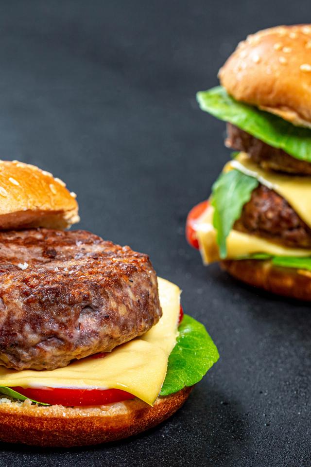 Wallpaper Two hamburgers with a big cutlet on the table