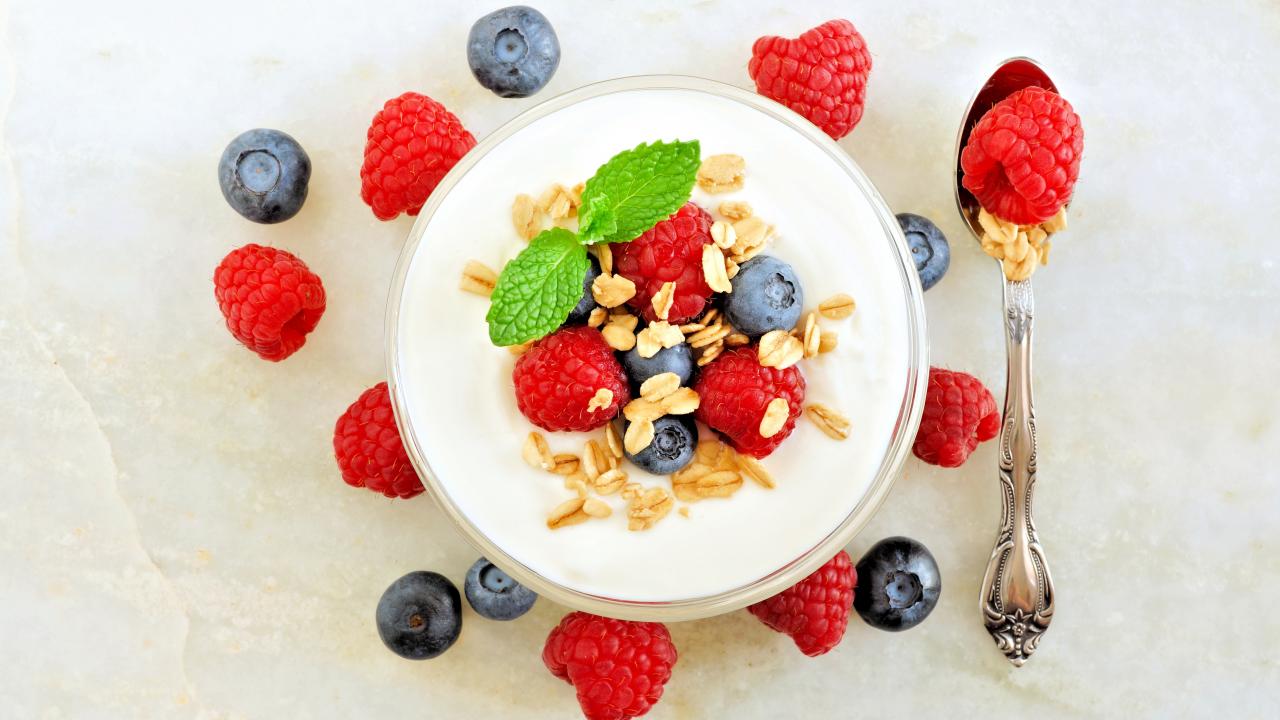 Wallpaper Yogurt with oatmeal and blueberries and raspberries