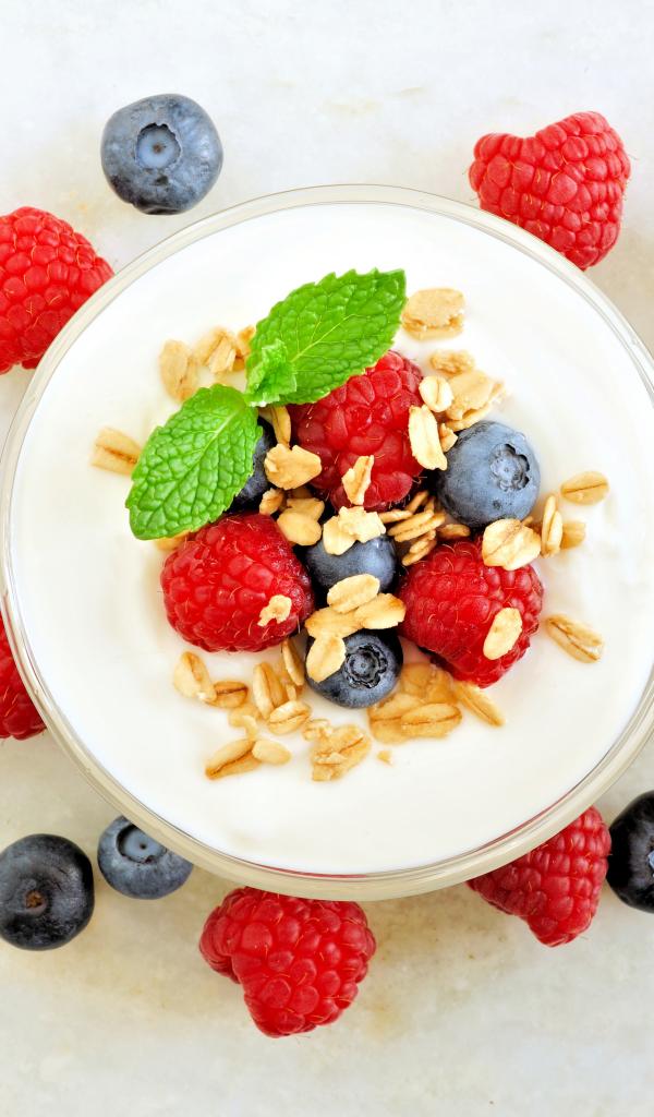 Wallpaper Yogurt with oatmeal and blueberries and raspberries