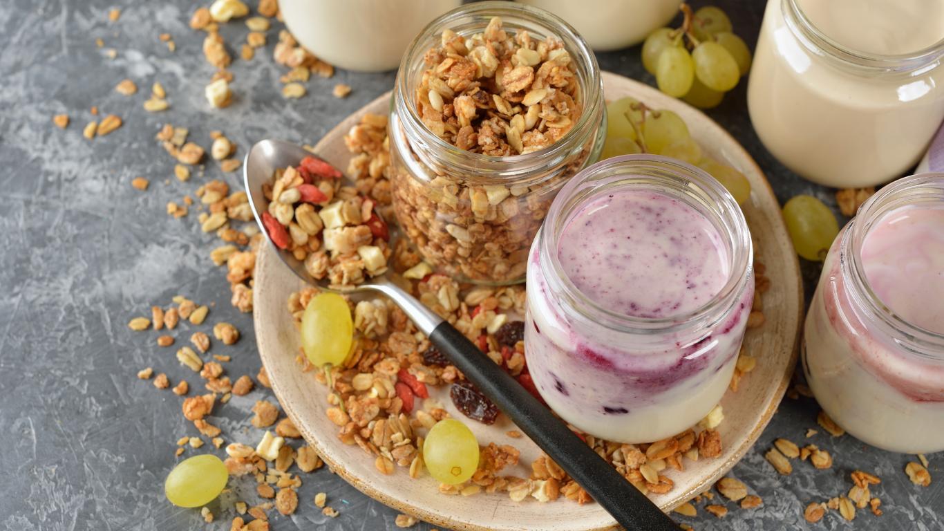 Wallpaper Muesli in a jar on a table with yogurt