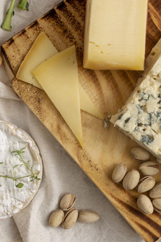 Wallpaper Blue cheese on a table with cookies and pistachios