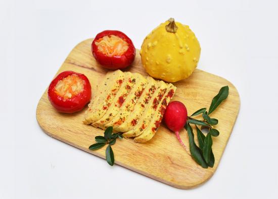 Wallpaper Cheese with vegetables on a cutting board on a white background