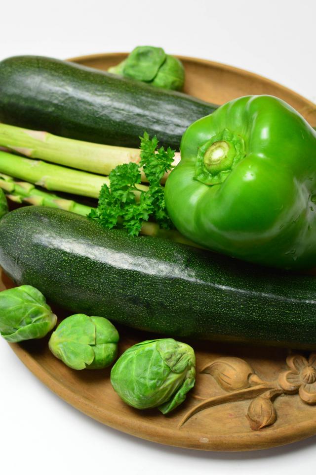Wallpaper Zucchini, peppers, cabbage and asparagus on a white background