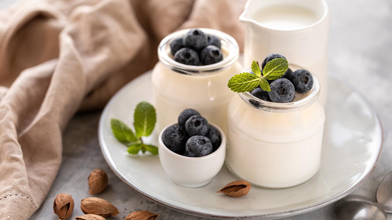 Wallpaper Yogurt on a plate with blueberries