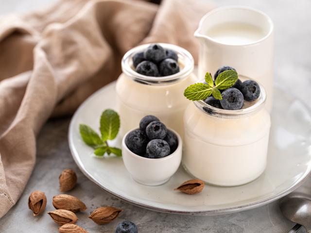 Wallpaper Yogurt on a plate with blueberries