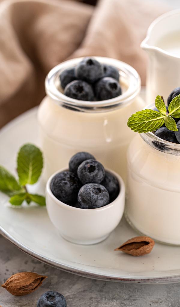 Wallpaper Yogurt in a glass with blueberries and strawberries