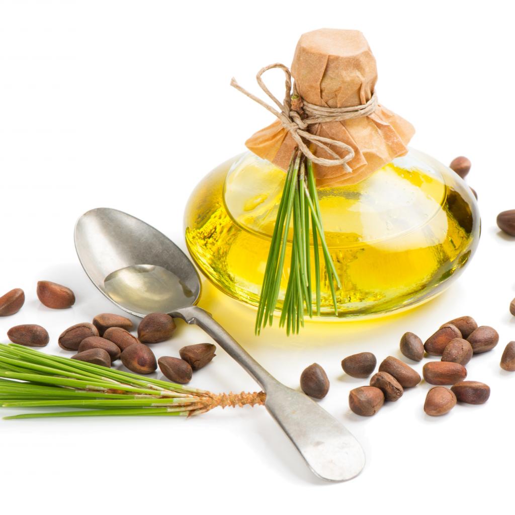 Wallpaper Cedar oil on a white plate with nuts and a spoon