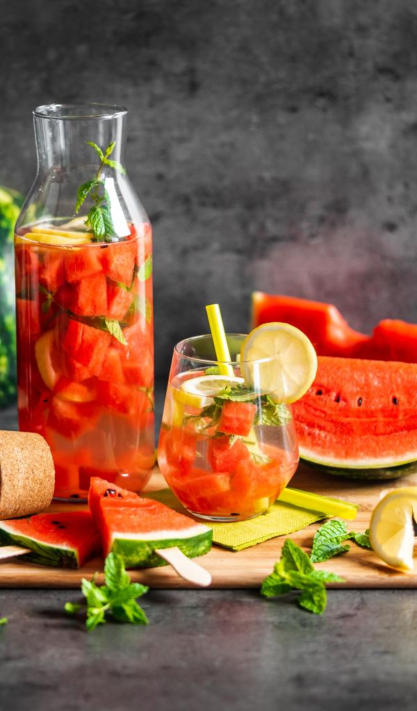 Wallpaper Tasty drink on the table with slices of watermelon