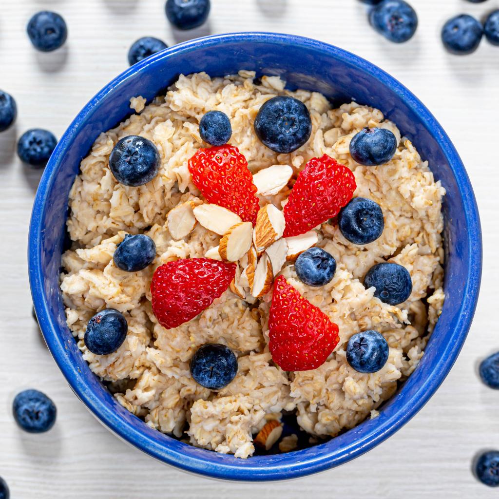 Wallpaper Oatmeal in a plate with blueberries and strawberries