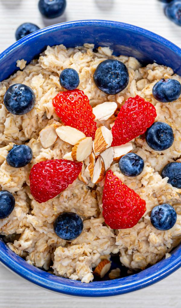 Wallpaper Oatmeal in a plate with blueberries and strawberries
