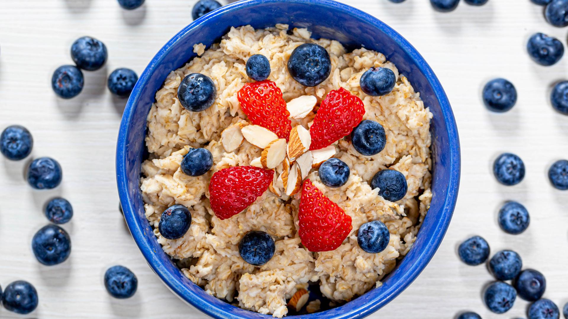 Wallpaper Oatmeal in a plate with blueberries and strawberries