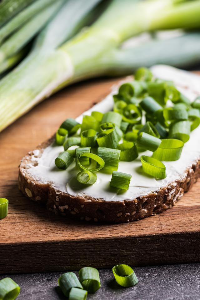 Wallpaper Sandwich with butter and green onions on the table