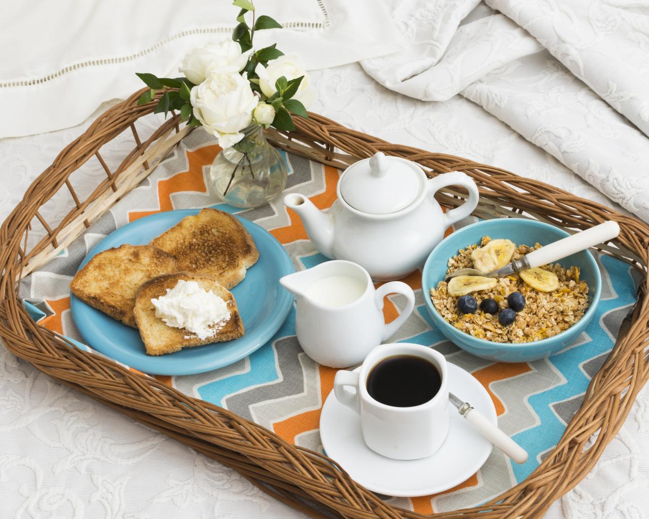 Wallpaper Light breakfast on a tray in bed for your beloved