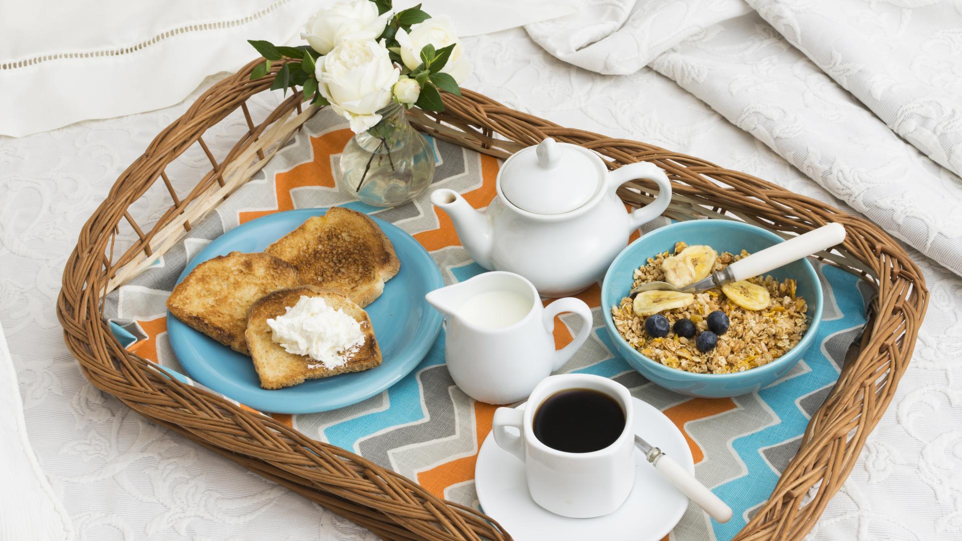 Wallpaper Light breakfast on a tray in bed for your beloved