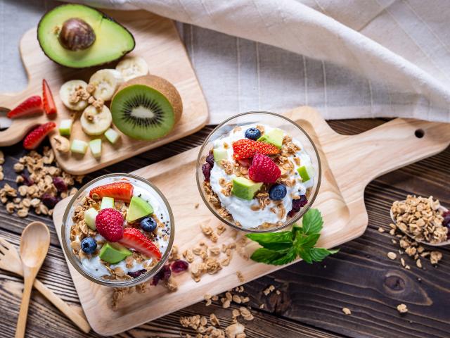 Wallpaper Oatmeal with berries and yogurt for breakfast