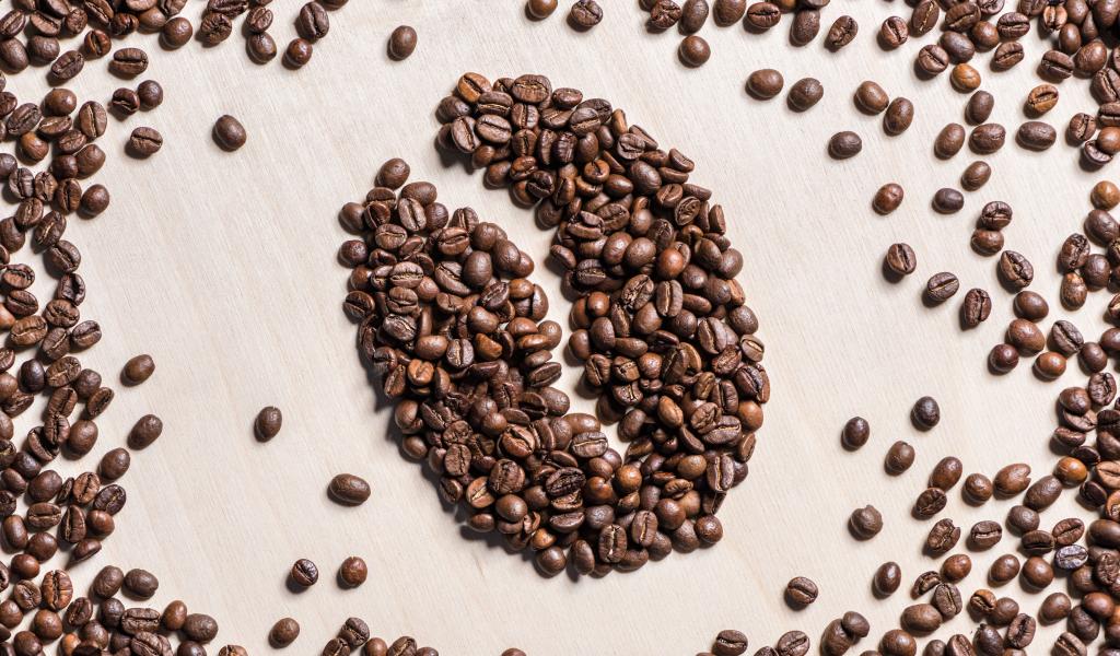 Wallpaper Drawing to grains on a table of roasted coffee beans
