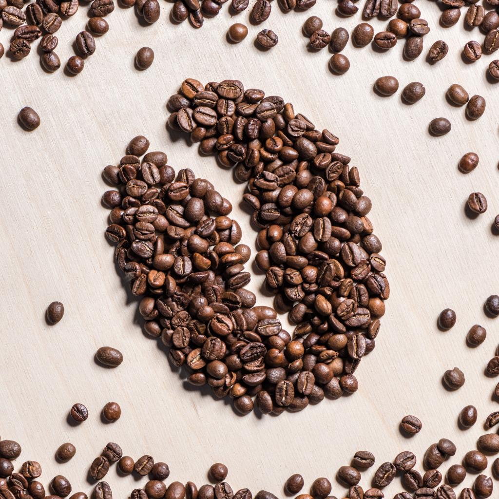 Wallpaper Drawing to grains on a table of roasted coffee beans