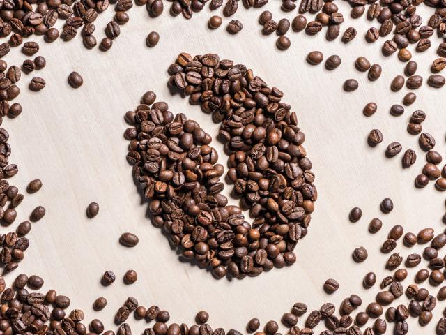 Wallpaper Drawing to grains on a table of roasted coffee beans