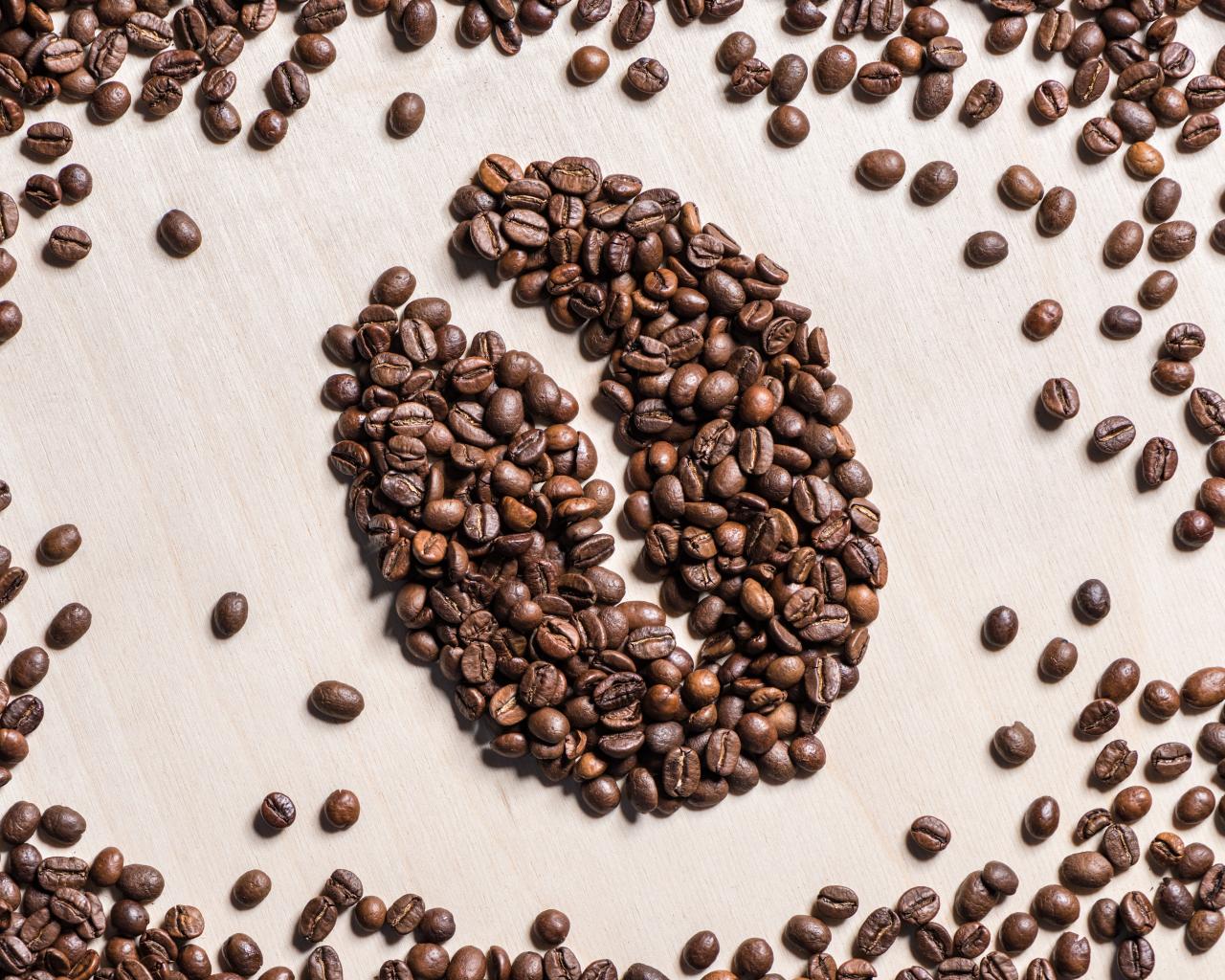 Wallpaper Drawing to grains on a table of roasted coffee beans