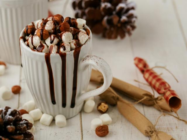 Wallpaper A cup of hot chocolate with marshmallows and cinnamon