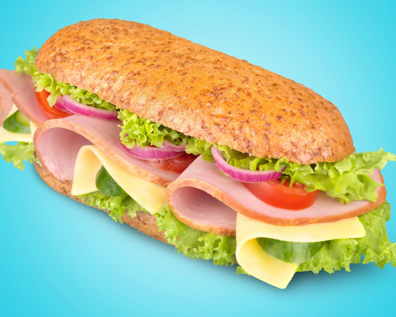 Wallpaper Sandwich with ham, cheese, tomato onions and lettuce on a blue background