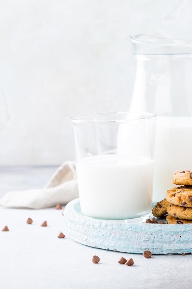 Wallpaper Shortbread cookies with chocolate on a table with milk