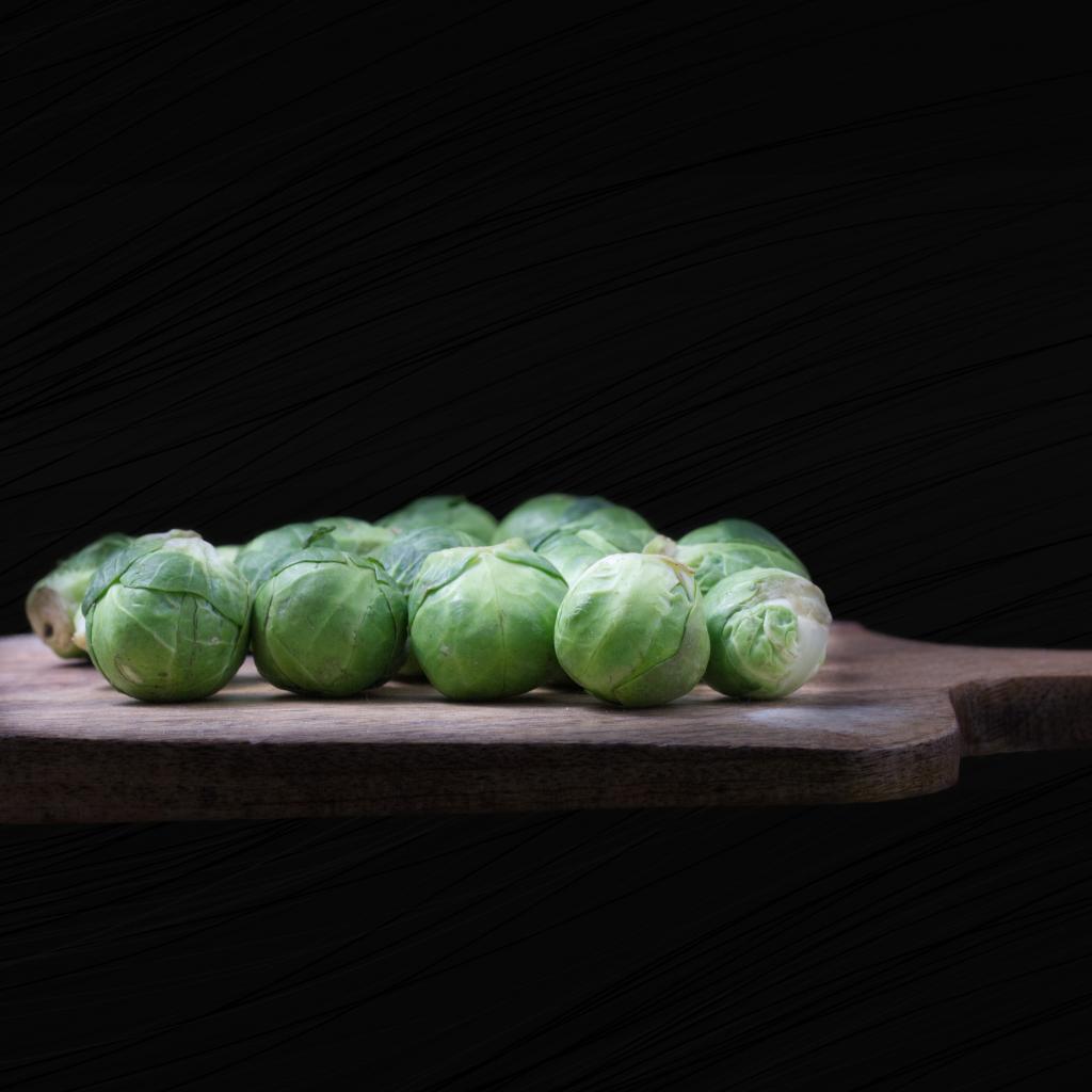 Wallpaper Brussels sprouts on a cutting board on a black background