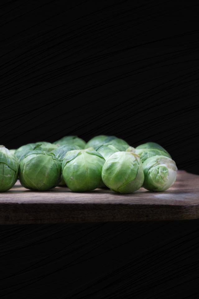 Wallpaper Brussels sprouts on a cutting board on a black background