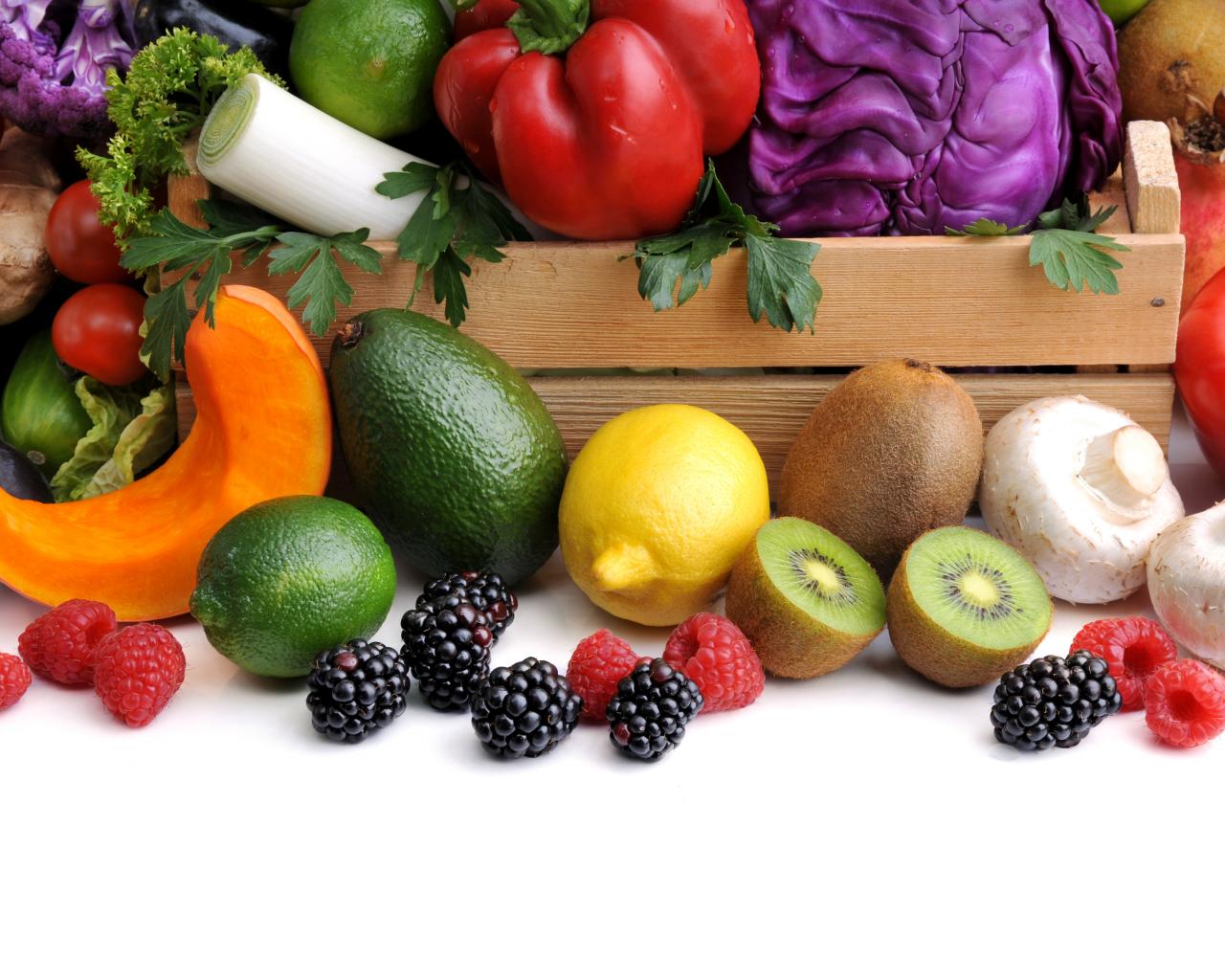 Wallpaper Fresh tasty vegetables with berries and fruits.