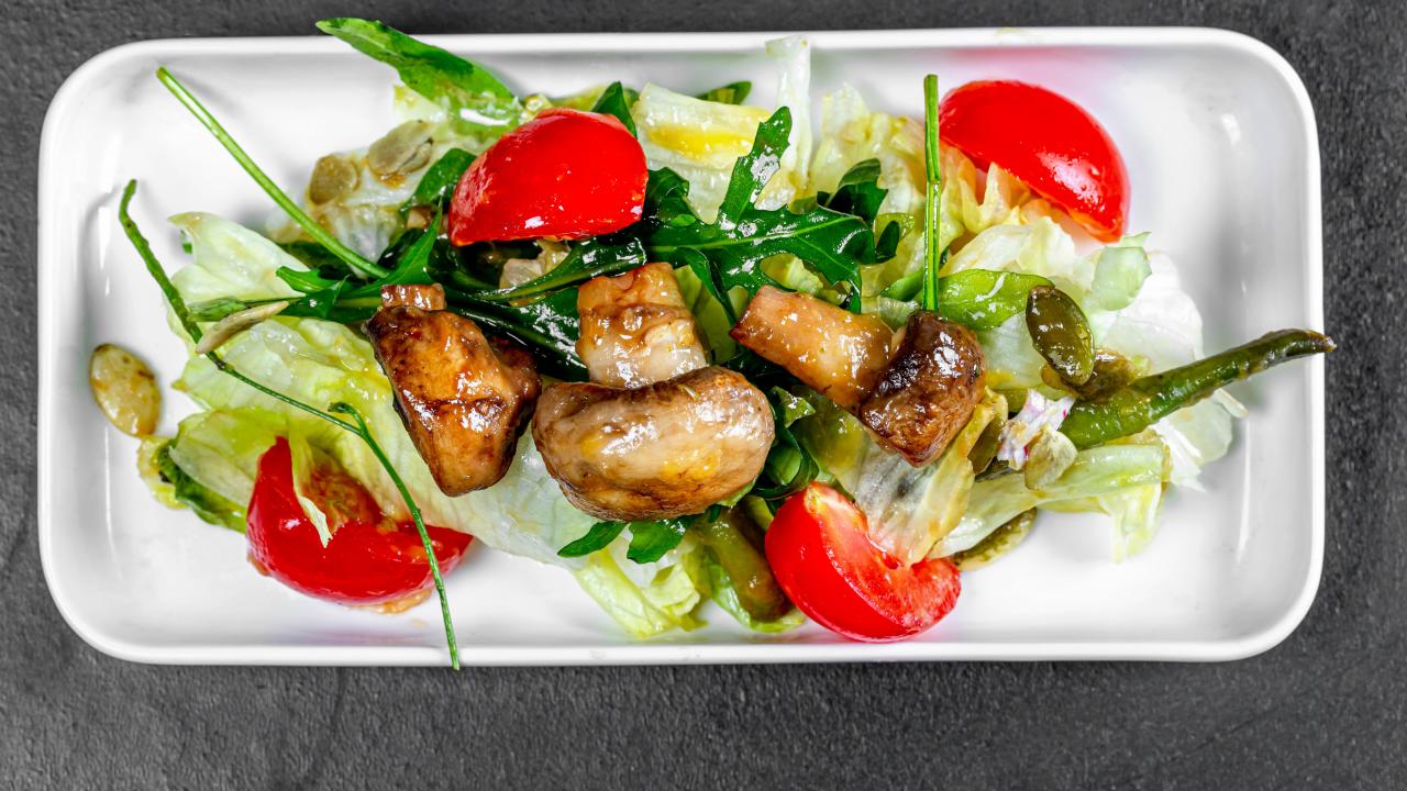 Wallpaper Salad with cabbage, fried mushrooms and tomatoes