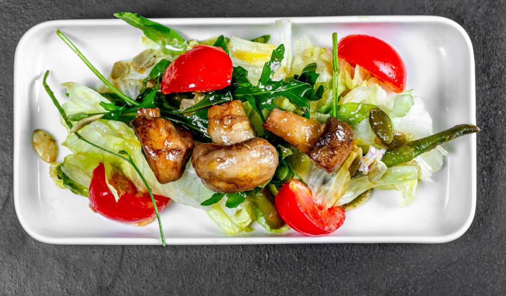 Wallpaper Salad with cabbage, fried mushrooms and tomatoes