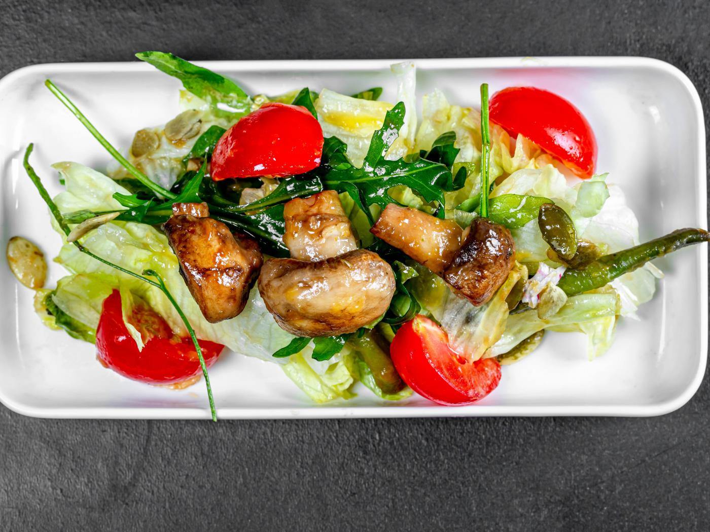 Wallpaper Salad with cabbage, fried mushrooms and tomatoes