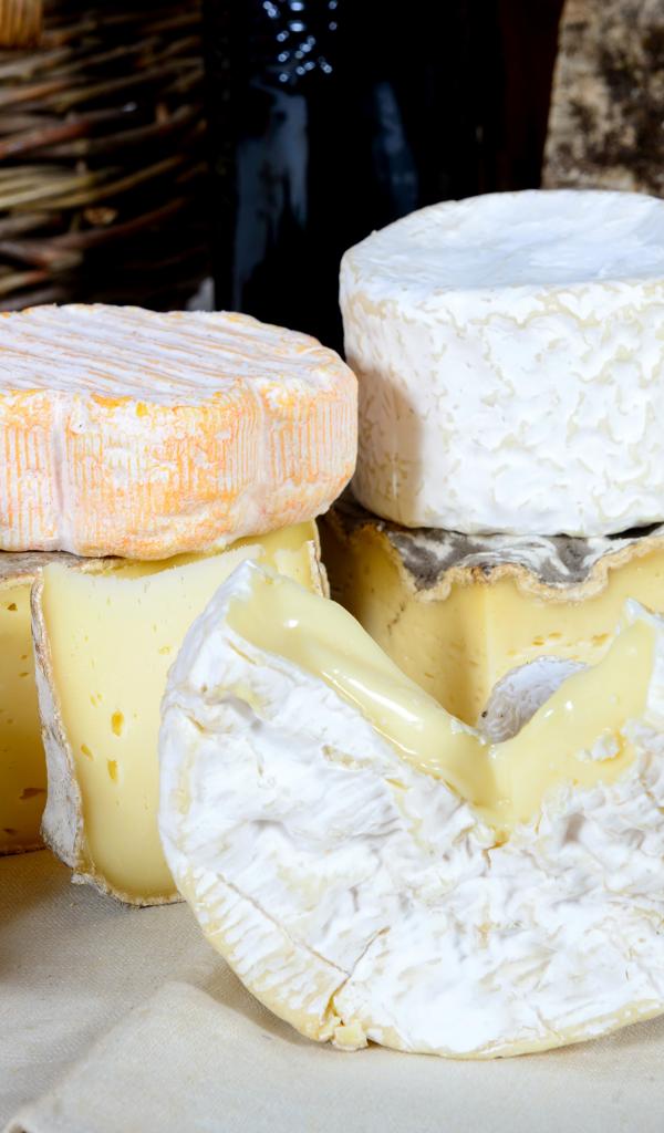 Wallpaper Cheese on a table with pears, apples and grapes