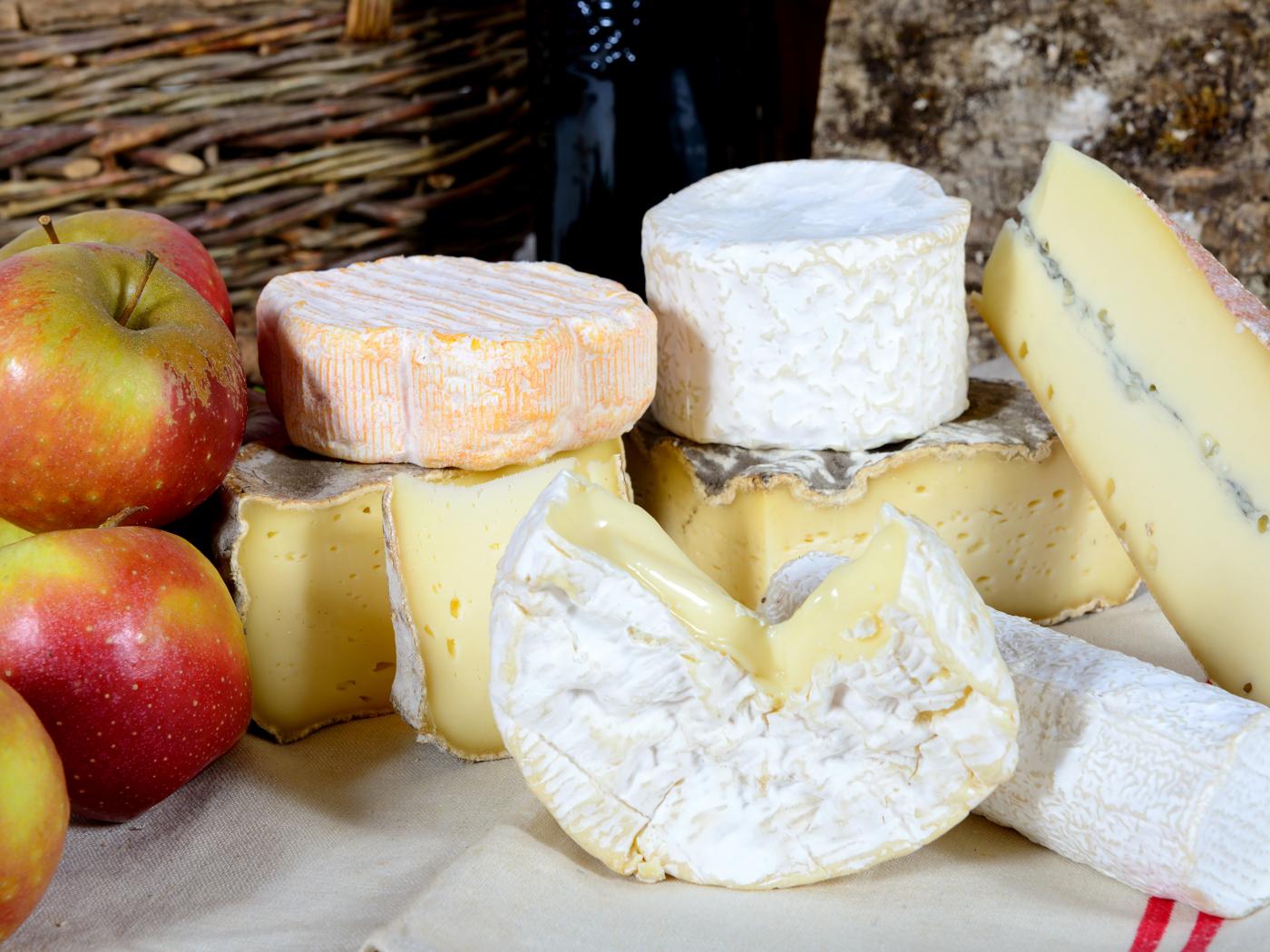 Wallpaper Blue cheese on a table with apples