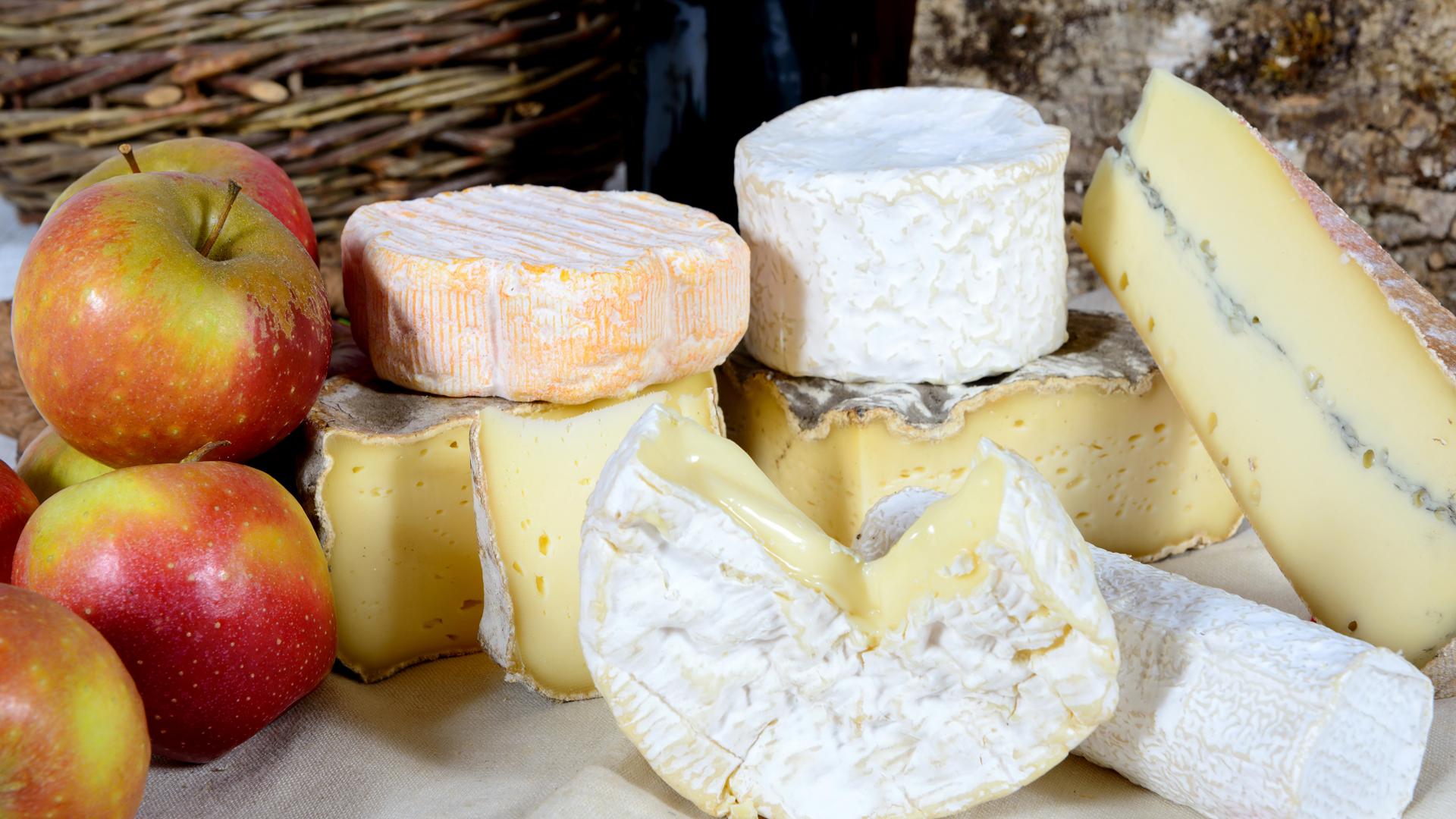 Wallpaper Blue cheese on a table with apples