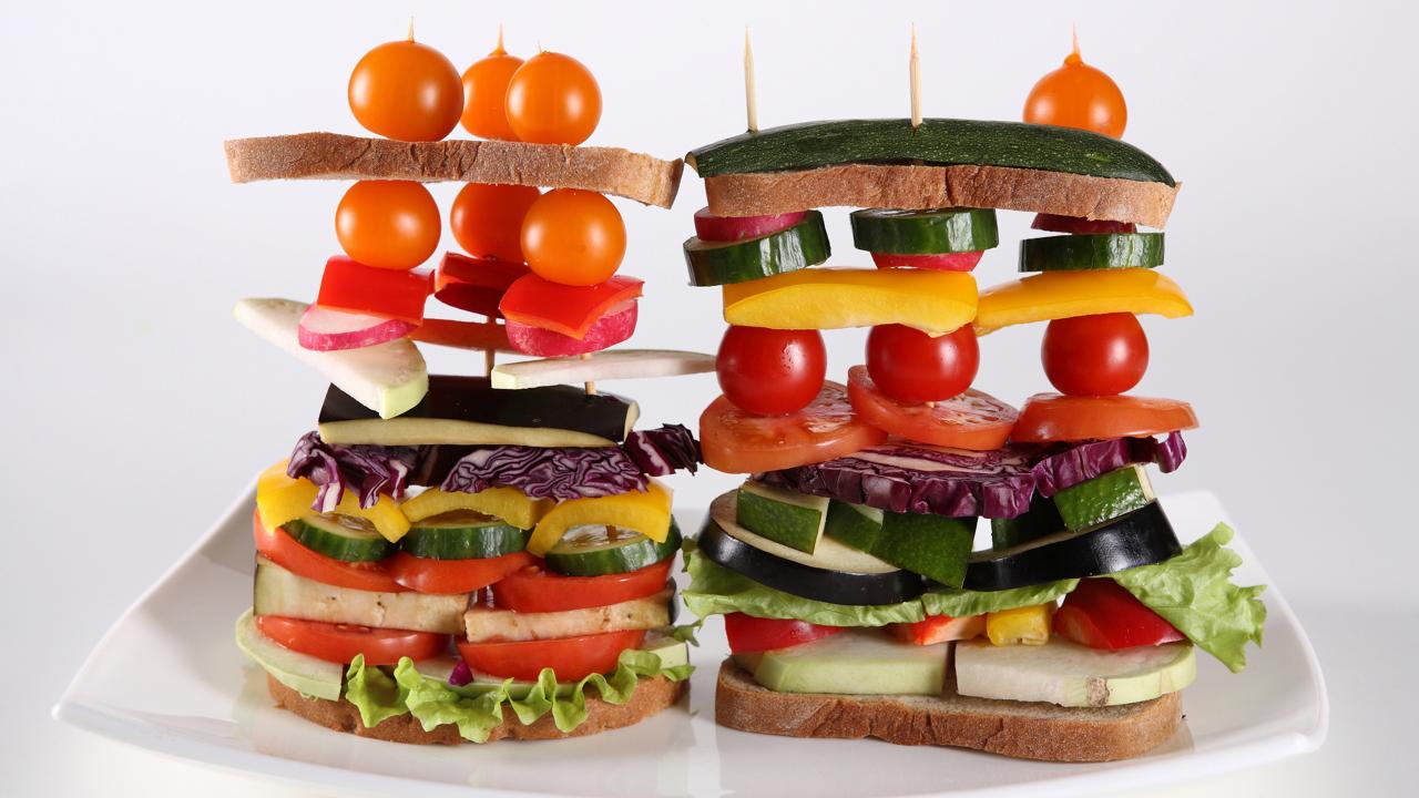 Wallpaper Appetizing sandwich with vegetables on a white background