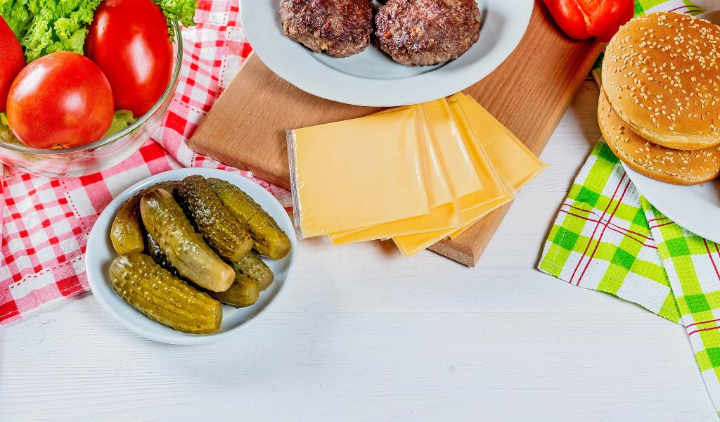 Wallpaper Ingredients for a hamburger on a table