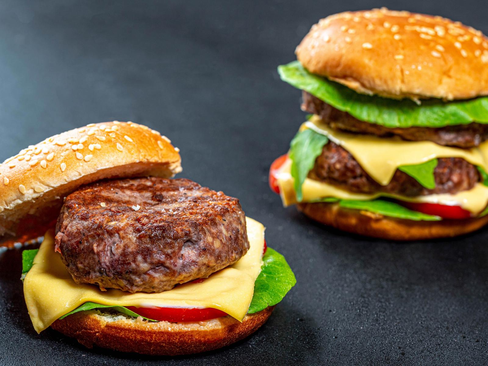 Wallpaper Two delicious hamburgers with a juicy cutlet on a gray background